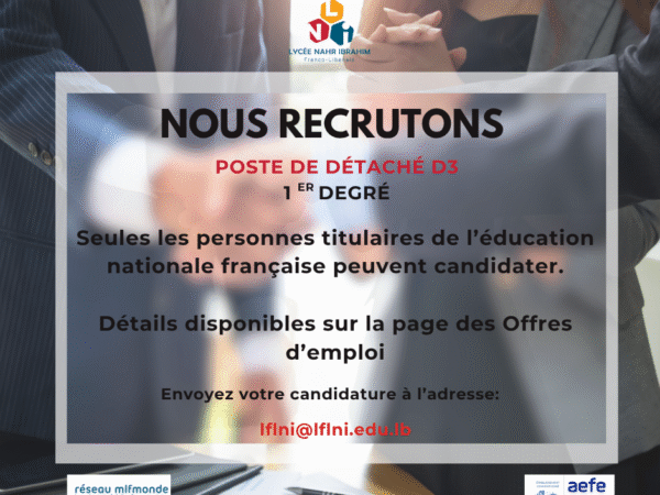 Un lycée français se doit non seulement de former à l’enseignement du français, mais aussi à sa culture, son esprit…et si possible d’en donner le goût. La participation au Prix littéraire des lycéens du salon du livre de Beyrouth, aux débats d’Ambassadeurs en herbe, à divers concours d’écriture…illustre cette volonté. A noter : des certifications en français sont aussi préparées. Nos élèves de CM2 préparent le Diplôme d’études en langue française (DELF) niveau A2, nos élèves de Seconde le niveau B2 (demandé par de nombreuses universités francophones).